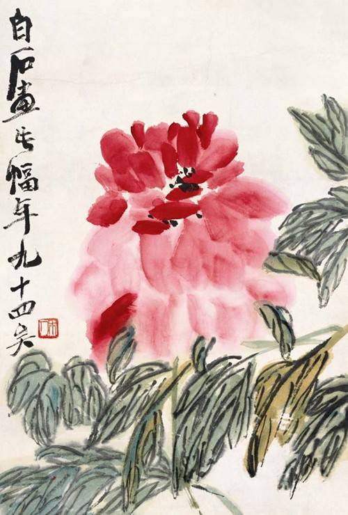 齐白石老人晚年有几幅牡丹画得最绝。他将本是娇滴滴的东西画得像个经霜阅世的长髯老人。活脱是他自己的写照。这是白石老人一生中最能体现人格力量的作品。他其它的作品则更多体现的是智慧和功力。